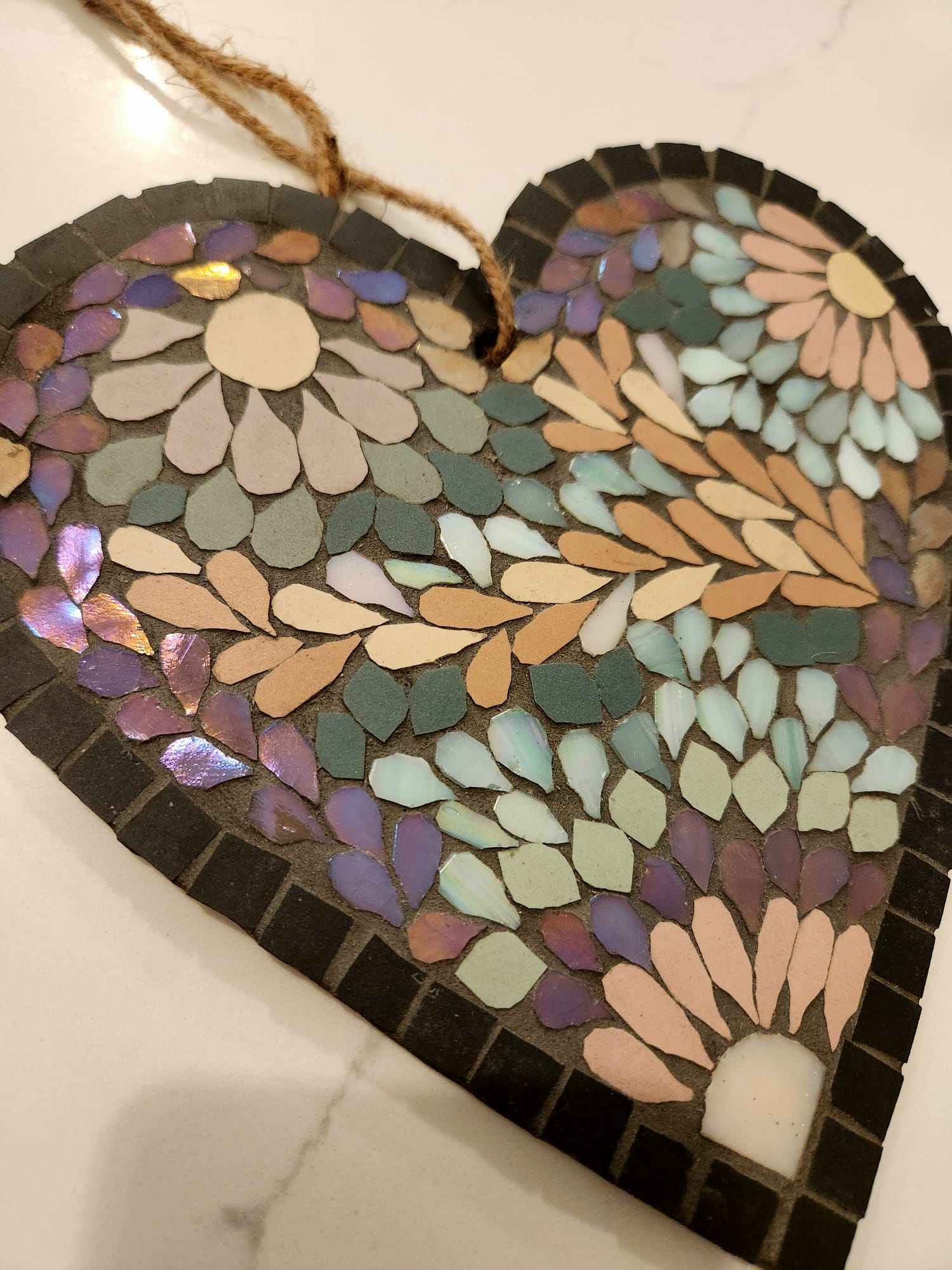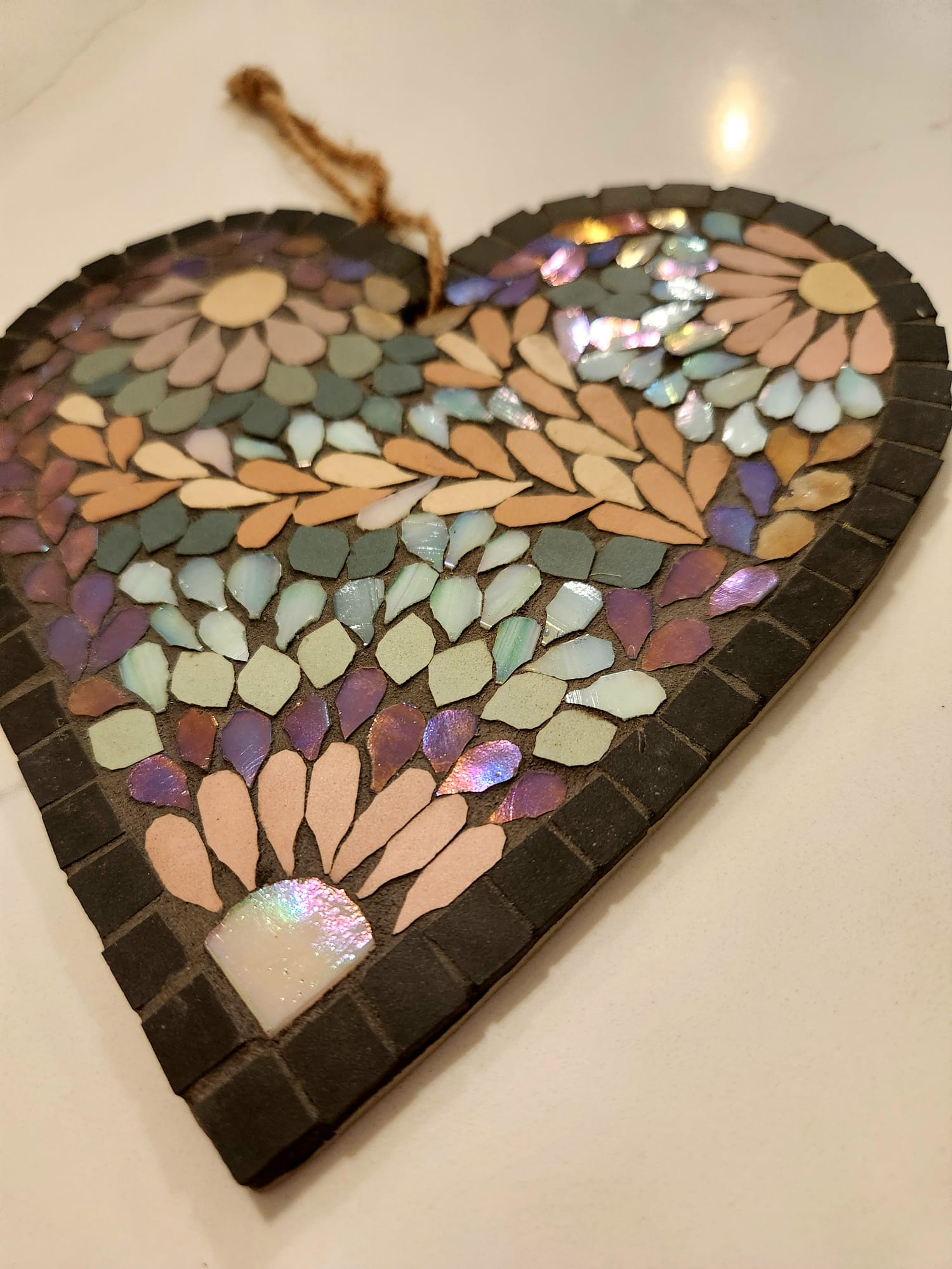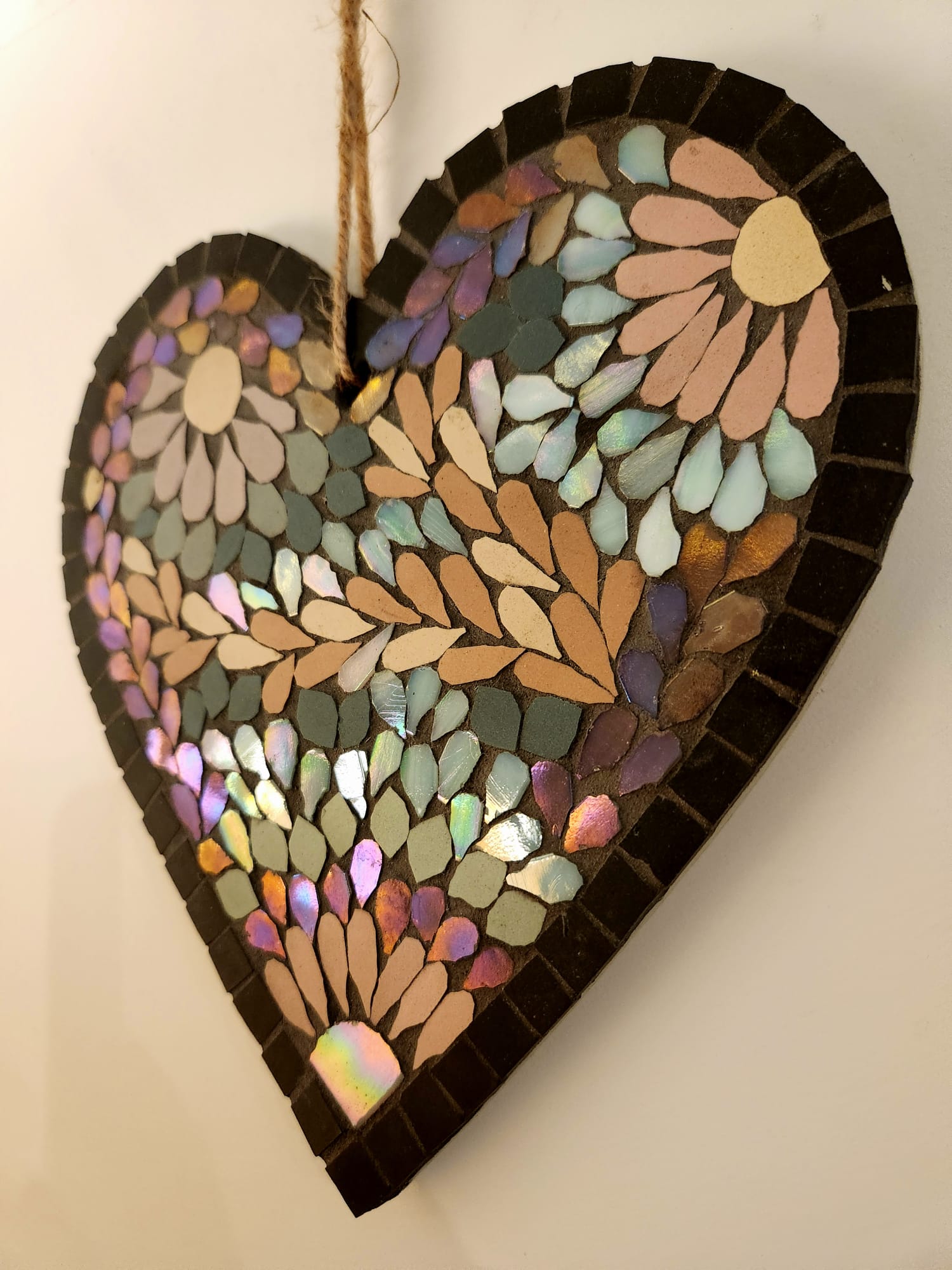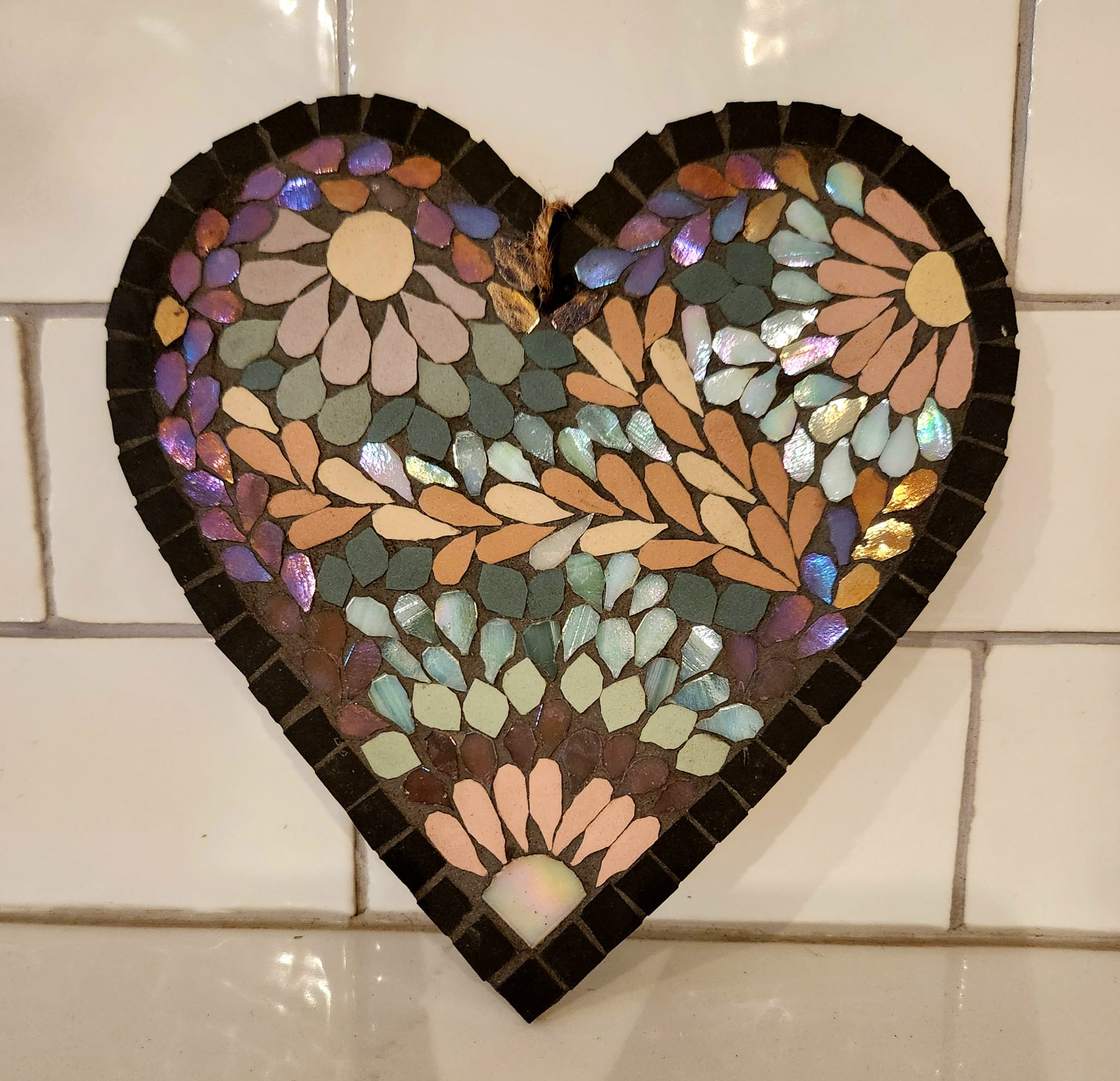 Handmade Iridescent Mosaic Heart – Pastel Ceramic Wall Art