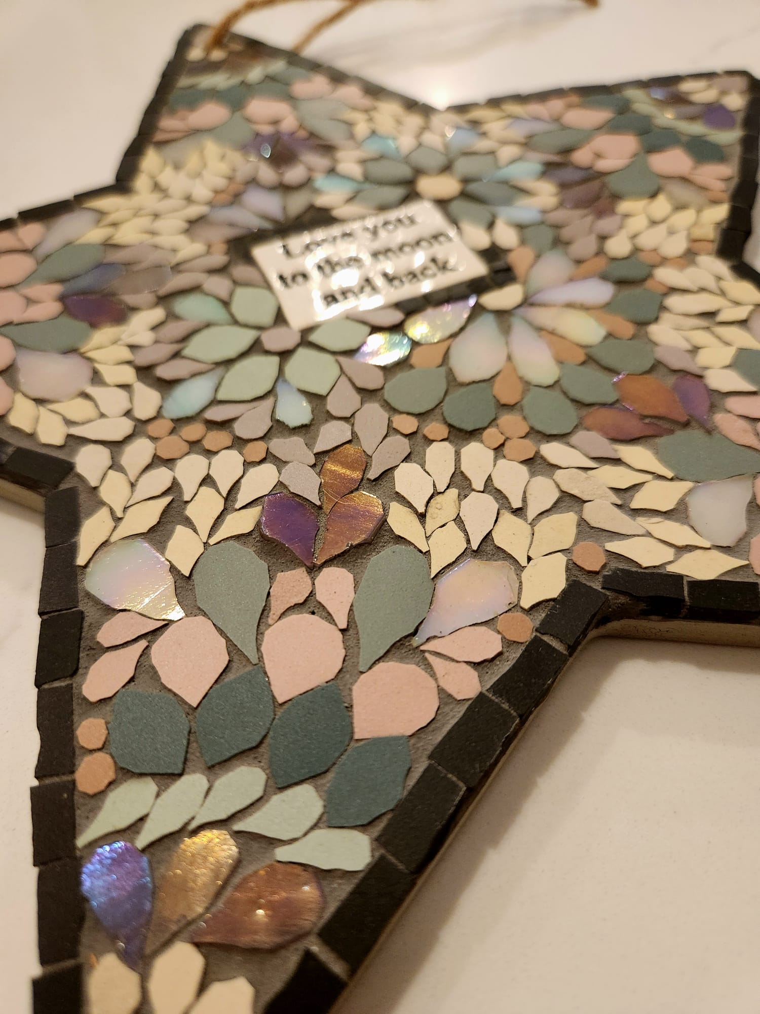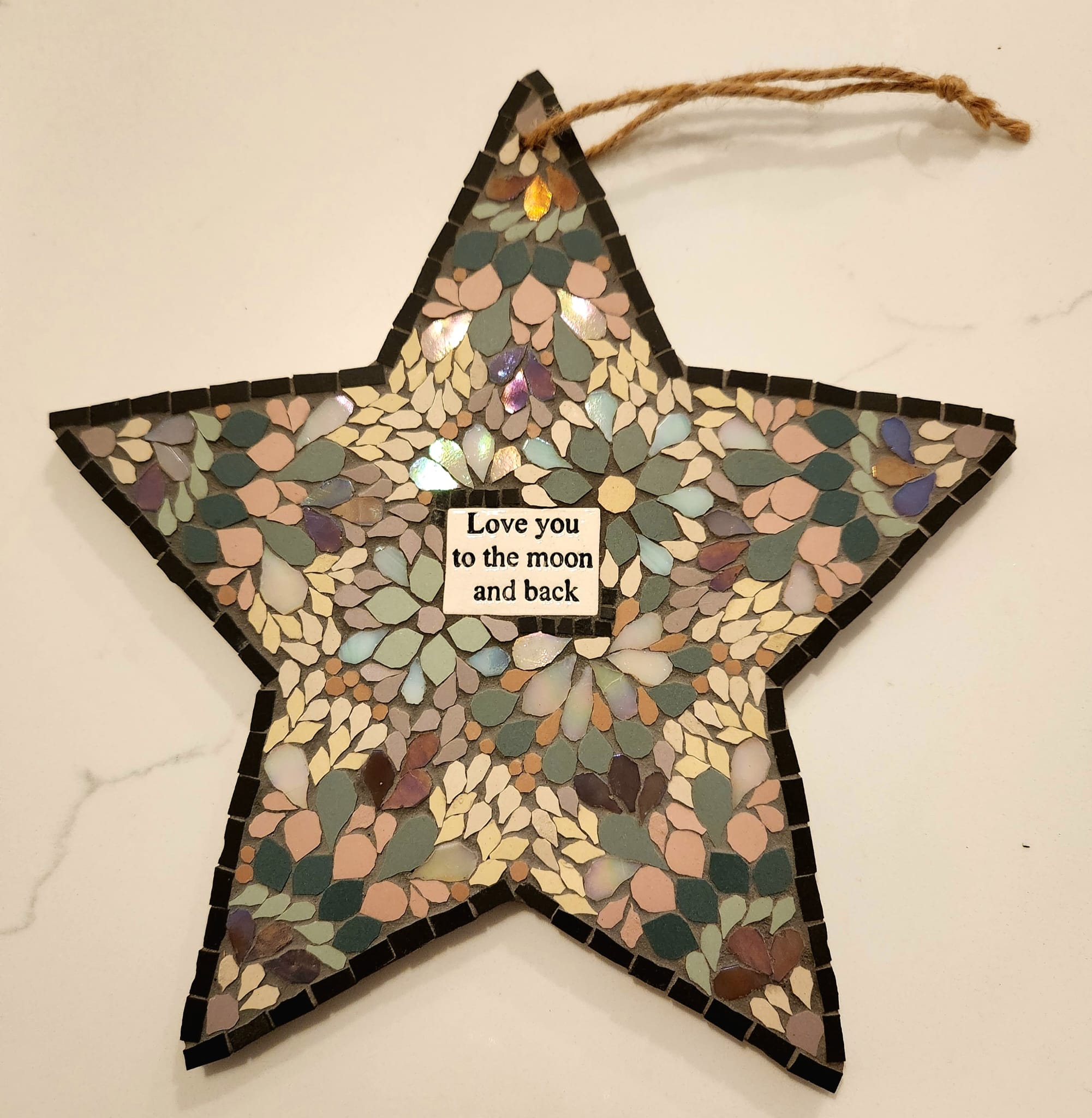 Mosaic “Love You to the Moon and Back” Hanging Star – Handmade Wall Art