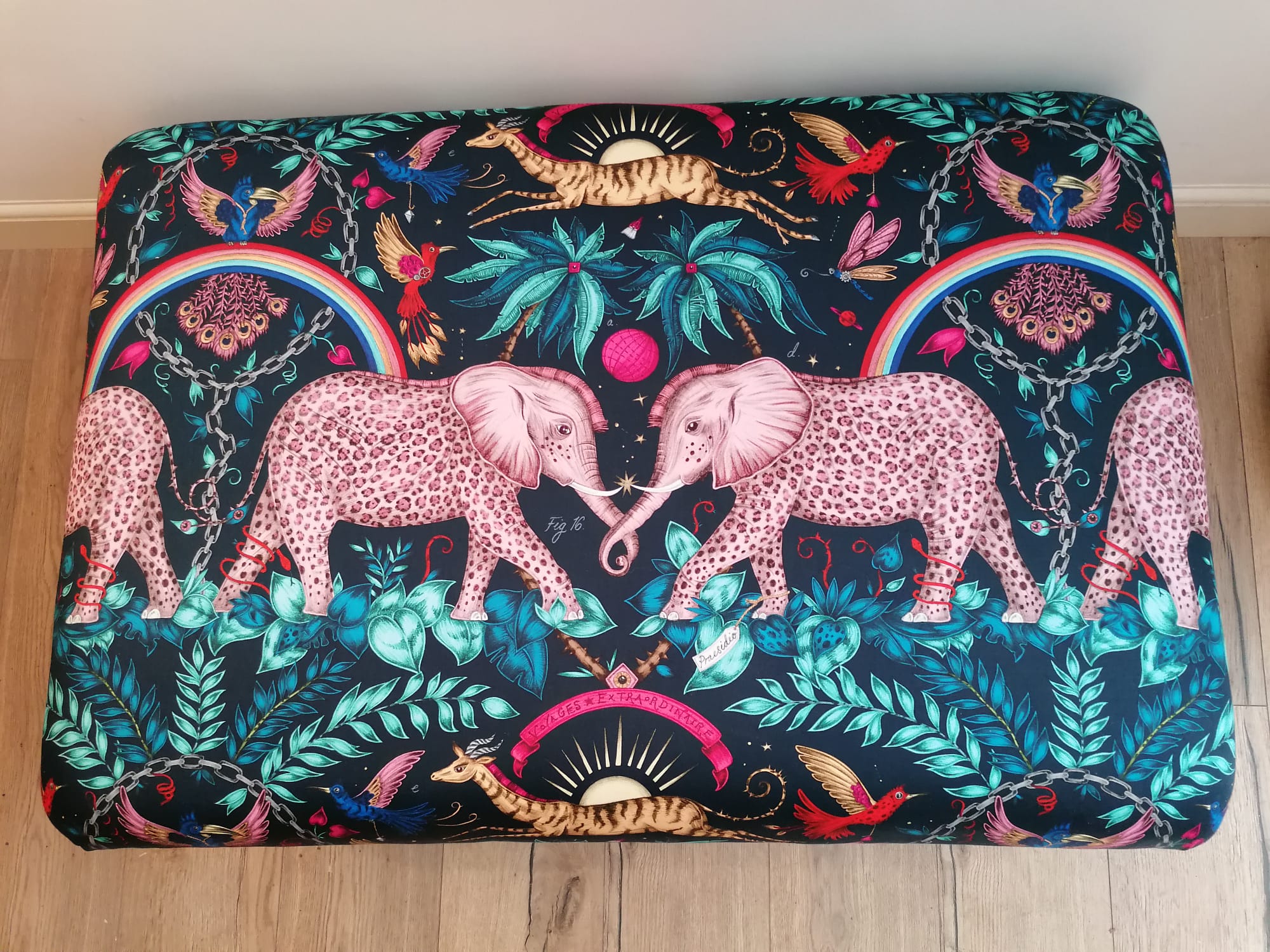 Upholstered Coffee Table, Large Footstool, Ottoman style in Clarke And Clarke Emma J Shipley Fabric Zambezi Cotton Navy. THIS SIZE ONLY